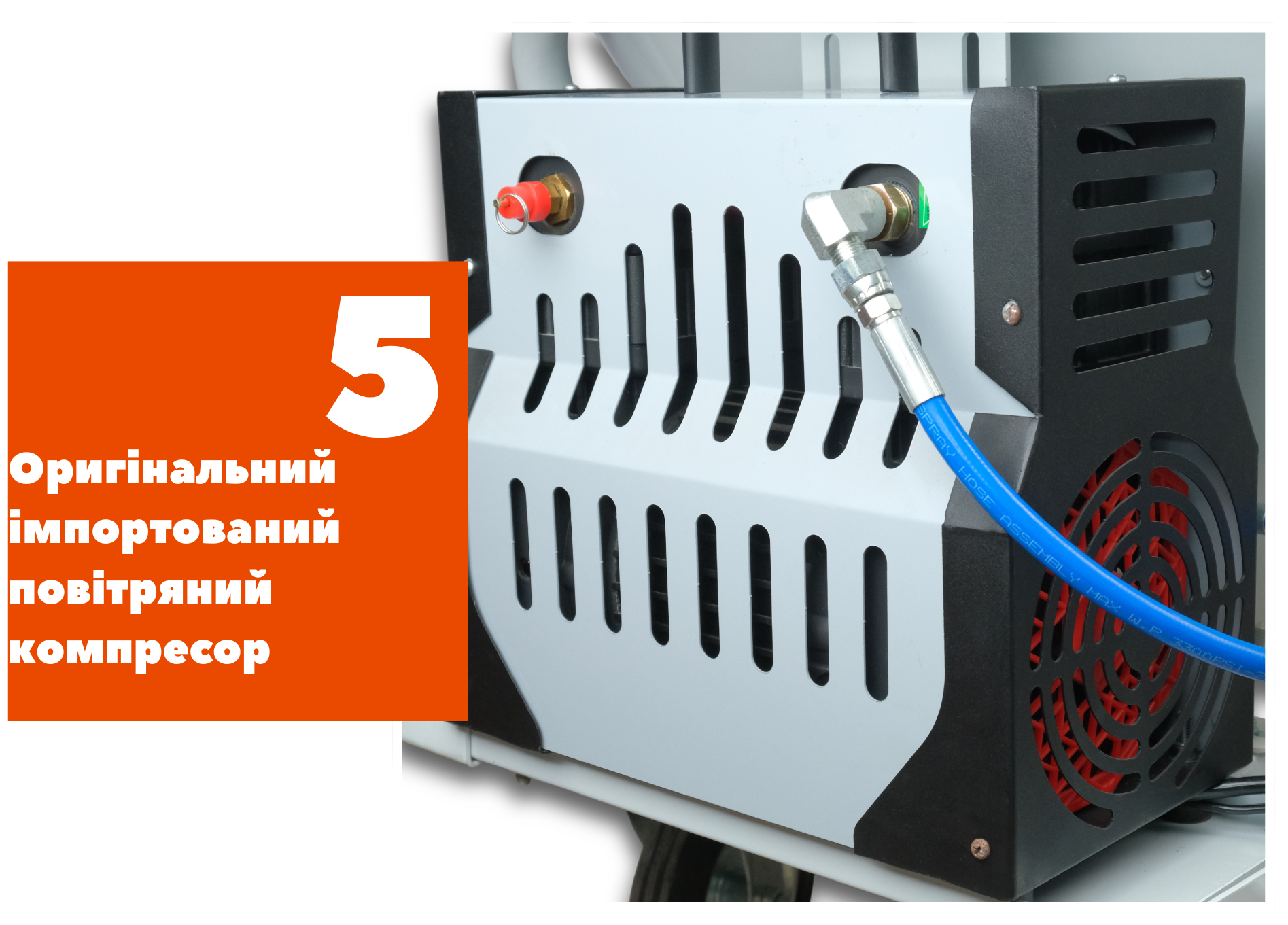 Оригінальний імпортований повітряний компресор з великим ресивером забезпечує стабільну подачу повітря, рівномірне розпилення та високу якість виконання робіт.