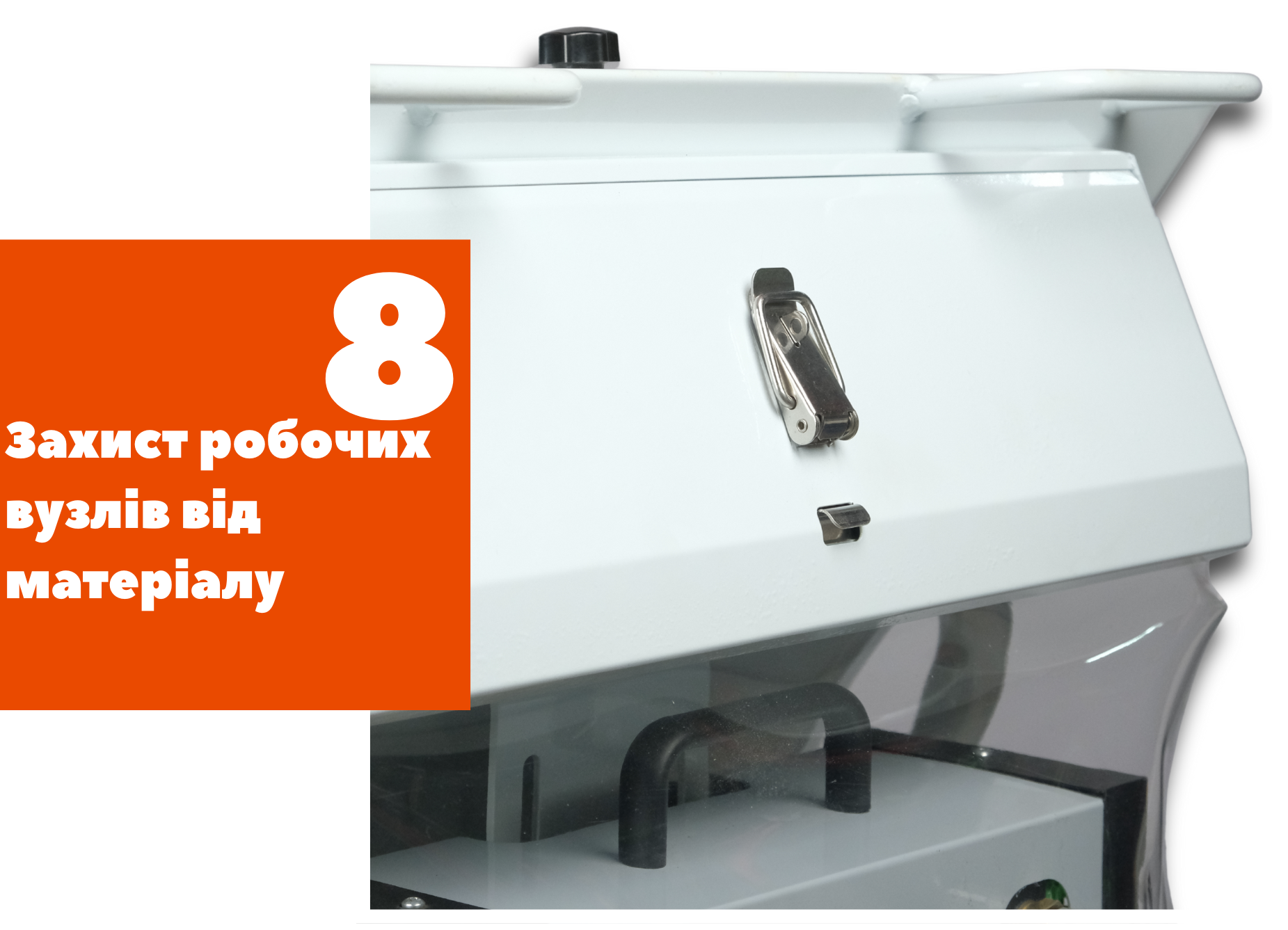 Робочі блоки та деталі захищені від потрапляння матеріалу всередину.