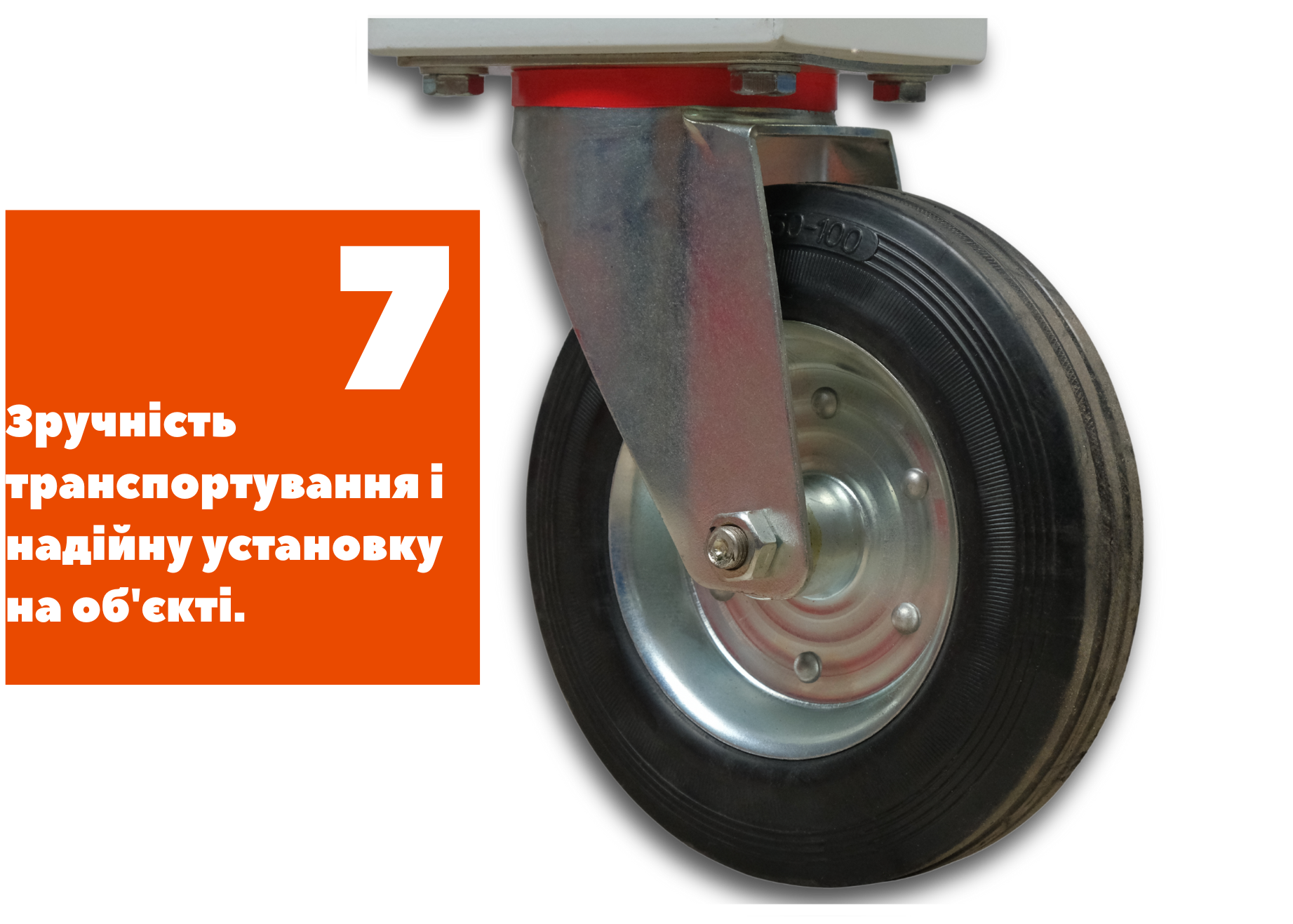 Пересувні колеса з фіксаторами забезпечують зручність транспортування і надійну установку на об'єкті.